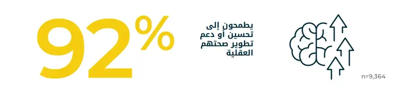 من الواضح أن المنطقة تأخذ هذا الأمر على محمل الجد، حيث ذكر %92 من المشاركين في الاستطلاع أنهم يرغبون في تحسين أو دعم تطوير صحتهم النفسية.