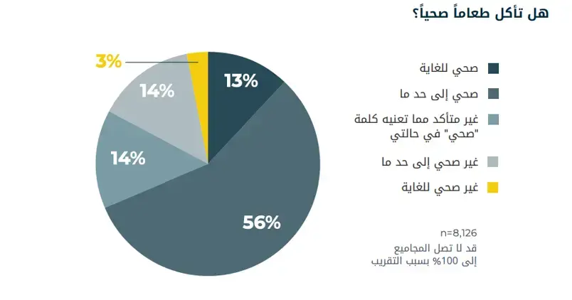 ■ مستويات النشاط العالي: أفاد حوالي 79% من المشاركين بأنهم يمارسون الرياضة مرتين على الأقل أسبوعياً، كما أن 69% منهم يحافظون على عادات غذائية صحية.