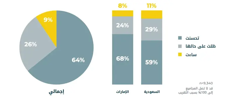 هل تشعر أن صحتك العامة قد تحسنت، أو ظلت على حالها، أو ساءت؟ (مقارنة بهذا الوقت من العام الماضي)
