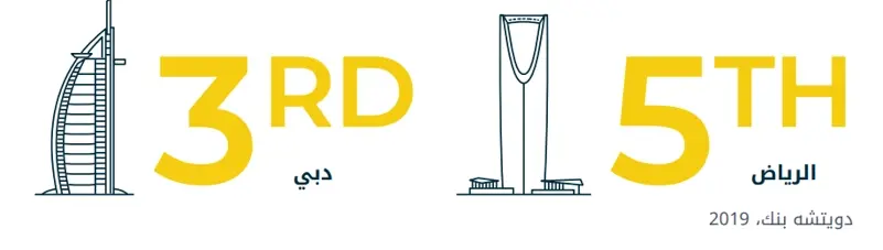 - وفقاً لأبحاث دويتشه بنك (2019)، تعد دبي ثالث أغلى مدينة عالمياً من حيث عضوية الصالات الرياضية، بينما تحتل الرياض المرتبة الخامسة. وفقاً لأبحاث دويتشه بنك (2019)، تُعد دبي ثالث أغلى مدينة عالمياً من حيث عضويات الصالات الرياضية، بينما تحتل الرياض المرتبة الخامسة. بالمقارنة مع ستوكهولم، التي تُعرف بأنها المدينة ذات أعلى نسبة اشتراكات في النوادي الرياضية عالمياً، فإن رسوم الاشتراك في دبي أعلى بنسبة 150%. كما تزيد دبي بنسبة 25% عن لندن و15% عن نيويورك.